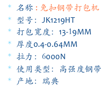 在金属行业,如钢铁、铝材、铜材等生产加工中,用于卷材、板材、型材等捆扎包装;也适用于木材、化工、物流等行业,对相应产品进行稳固包装